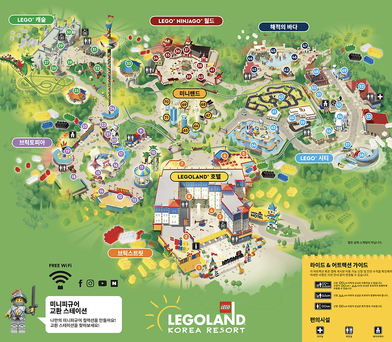춘천 레고랜드 미니맵 어트랙션 위치 정보 레고랜드 호텔 위치 객실 정보 미니 피규어 교환 스테이션